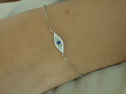 Evil Eye Diamond Bracelet, 14k Solid Gold Lucky Charm, Gift for Ladies, 2mm Blue Sapphire Eye Bracelet, Women Co-Worker Gift - 14k Yellow Gold / 5