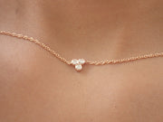 14K Solid Gold Trio Stone Diamond Necklace – Tri Stone Cluster Necklace with Thin Gold Chain – Bazel Set Diamond Necklace - Bridal Gift - 14k Yellow gold / 14 Inches