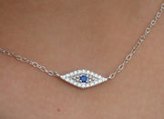Evil Eye Diamond Necklace Evil Eye Sapphire Necklace Evil Eye Luck Charm Necklace Gift for Co-Worker, Sweetheart, Wife, Mom - 14k Yellow gold / 14 Inches