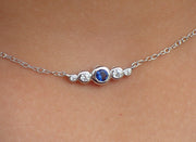Sapphire Necklace Gift Sapphire Diamond Necklace Gold Sapphire Necklace Real Gold Sapphire Diamond Necklace Gift for Ladies - 14k Yellow gold / 14 Inches