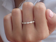Marquise Shape Diamond Wedding Band, 14k Solid Gold Pave Set Band, Delicate Bridal Band, Diamond Stackable Band - 3 / 14k Yellow Gold