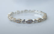 Marquise Shape Diamond Wedding Band, Half Eternity band in Solid Gold, Dainty Stackable Art Deco Band, Platinum 950 Band - 3 / 14k Yellow gold