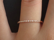 Micro Pave Diamond Wedding Band, 18k Rose Gold Half Eternity Ring, Stackable Diamond Ring, Thin Dainty Band, Ready to Ship - 18K Rose Gold