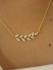 Marquise Leaf Necklace / Moissanite Cluster Necklace / Bridal Jewelry Pendant Necklace / Moissanite Leaf Necklace / Gift for Her - Rose Gold / 14 Inches