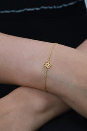 Garnet Cluster Bracelet, Flower Design Bracelet, January Birthstones, Bridesmaid Gift, Bridal Bracelet Gift for Her - Yellow Gold / 5 Inches