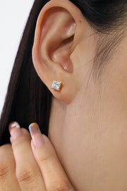 0.50ct Princess Cut Diamond Stud Earrings, Princess Cut Unique Earrings, Tiny Diamond Studs Earrings, Anniversary Gifts, Wedding Earrings - Yellow Gold
