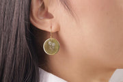 Dangle Drop Circle Flower Earrings, Rose Flower Earrings, June Birth flower Earrings, Modern Earrings Gift for Her - Yellow Gold