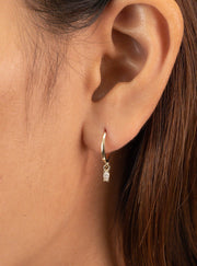 Dangle Drop Moissanite Hoop Earrings, Delicate Moissanite Earrings, Minimalist Hoop Earrings, Huggie Hoop Earrings Gift for Women - Yellow Gold