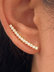 Ear Climber Earrings / Earrings Gift for Women / Statement Earrings / Bridesmaid Gift / Diamond Earrings - Yellow Gold