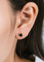 Four Prong Blue Sapphire Stud Earrings, September Birthstone Gifts, Starling Silver Sapphire Solitaire Earring, Everyday Earrings - Yellow Gold