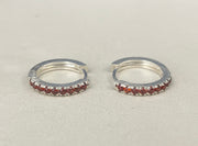 Garnet Hoop Earrings, January Birthstone Gifts, Huggies Hoop Earrings, Minimal Hoop Earrings - Yellow Gold
