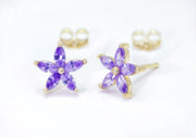 Marquise Cut Amethyst Stud Earrings, February Birthstone Earrings, Five Stone Flower Earrings, Gemstone Earrings - Yellow Gold