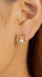 Unique Mother's Day Gift for Her, Pearl Circle Stud Earrings, Unique Mom Gift, Gift for New Mom, Gift for Stepmom, Gift for Mother-in-law - White Gold