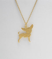 Chihuahua Dog Pendant Necklace, Minimalist Dog Charm Necklace, Dog Lover Memorial Necklace, Memorial Gift - Yellow Gold / 14 Inches