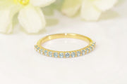 Shared Prong Aquamarine Wedding Band, March Birthstone Ring, Classic Wedding Ring, Women Wedding Band, Gift for Her - Yellow Gold / 2